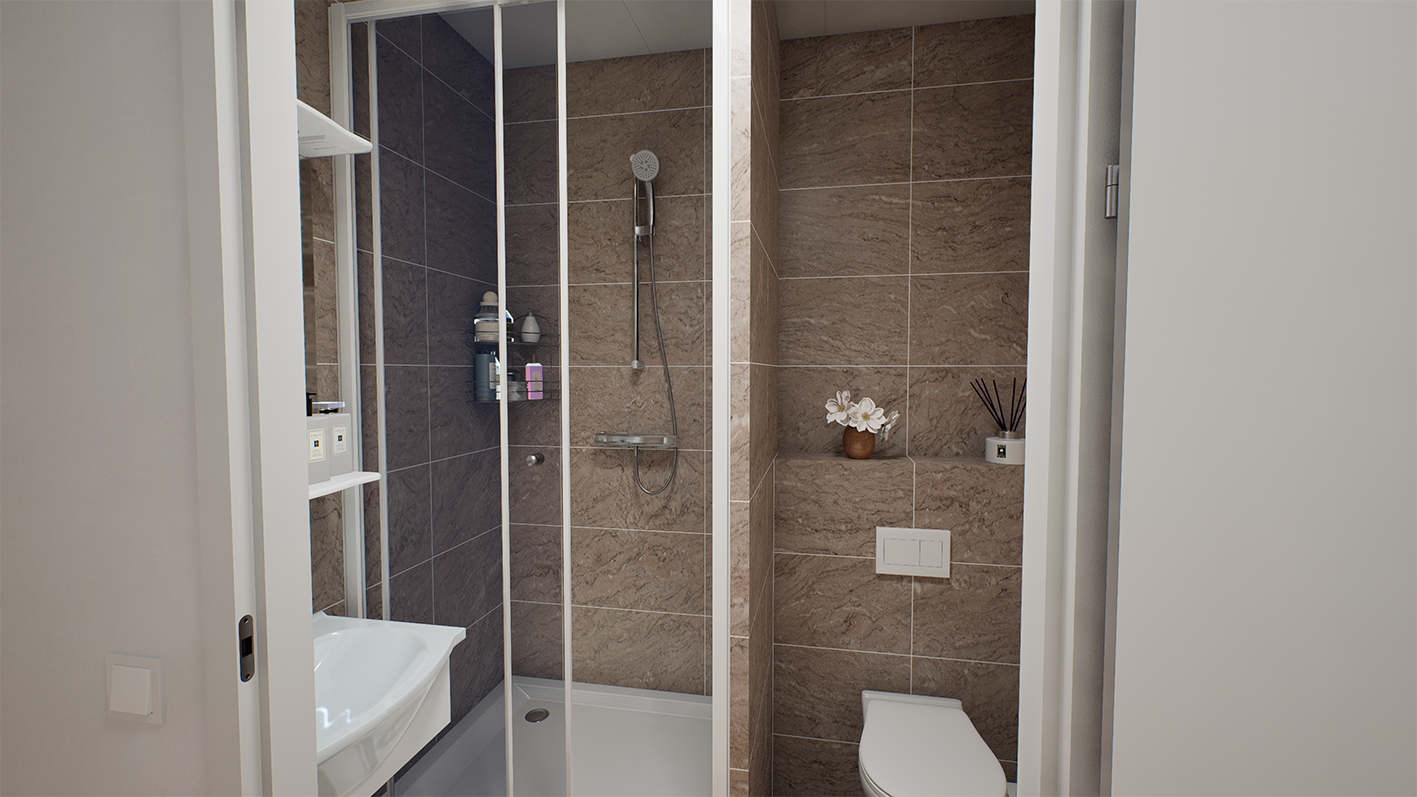 De ruime en onderhoudsarme Plus badkamers zijn ontworpen voor intensief dagelijks gebruik en bieden een comfortabele, duurzame en efficiënte oplossing voor grootschalige woningbouw. Dankzij de plug‑and‑play installatie konden de modules snel en consistent in het bouwproces worden geïntegreerd, met een hoge afwerkingskwaliteit in alle appartementen.