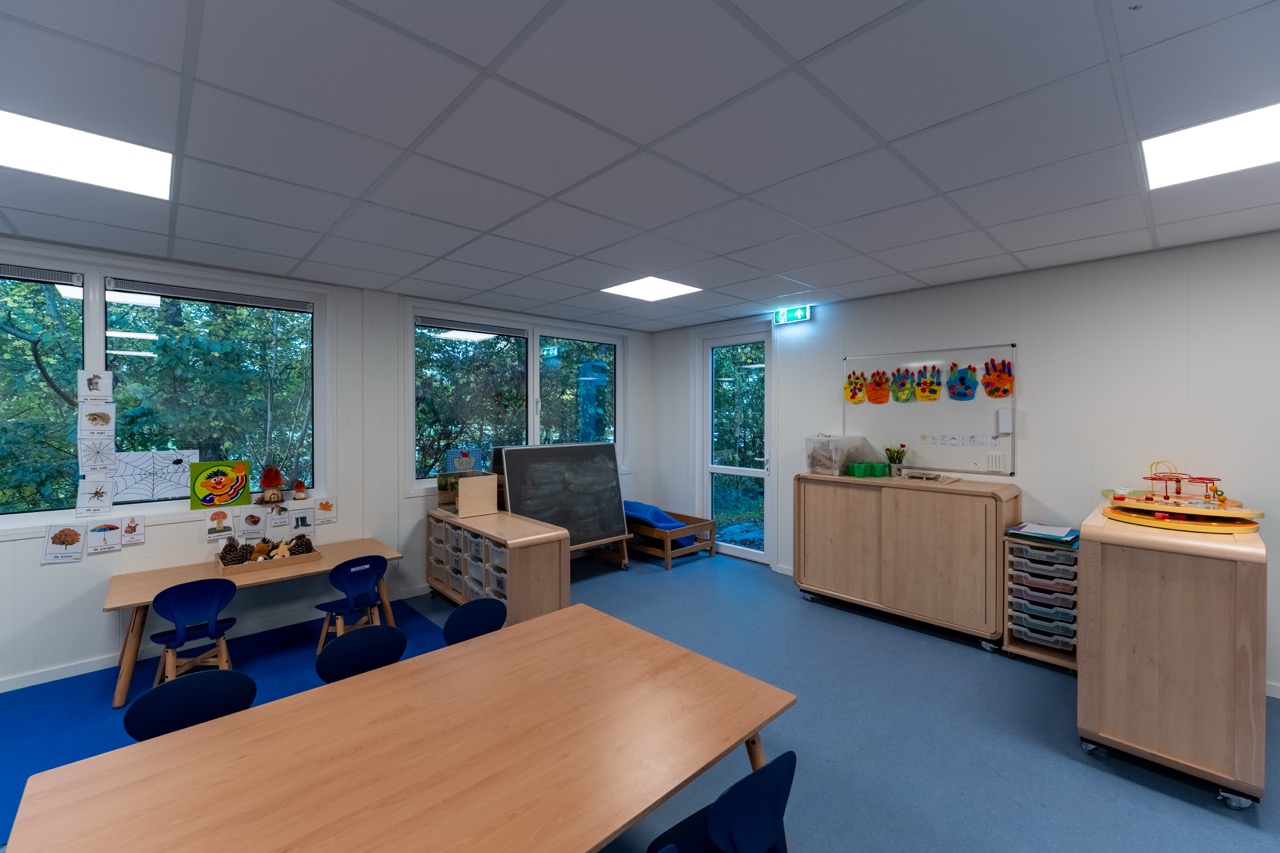 In opdracht van de gemeente Leudal hebben we voor de taalschool gelegen bij het asielzoekerscentrum in Baexem een uitbreiding met peutervoorziening gerealiseerd. Deze extra ruimte is geplaatst aan de bestaande schoolfaciliteit en biedt meer ruimte voor leerlingen van De Brink. De uitbreiding voldoet aan de actuele normen zoals Frisse Scholen klasse B.