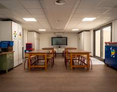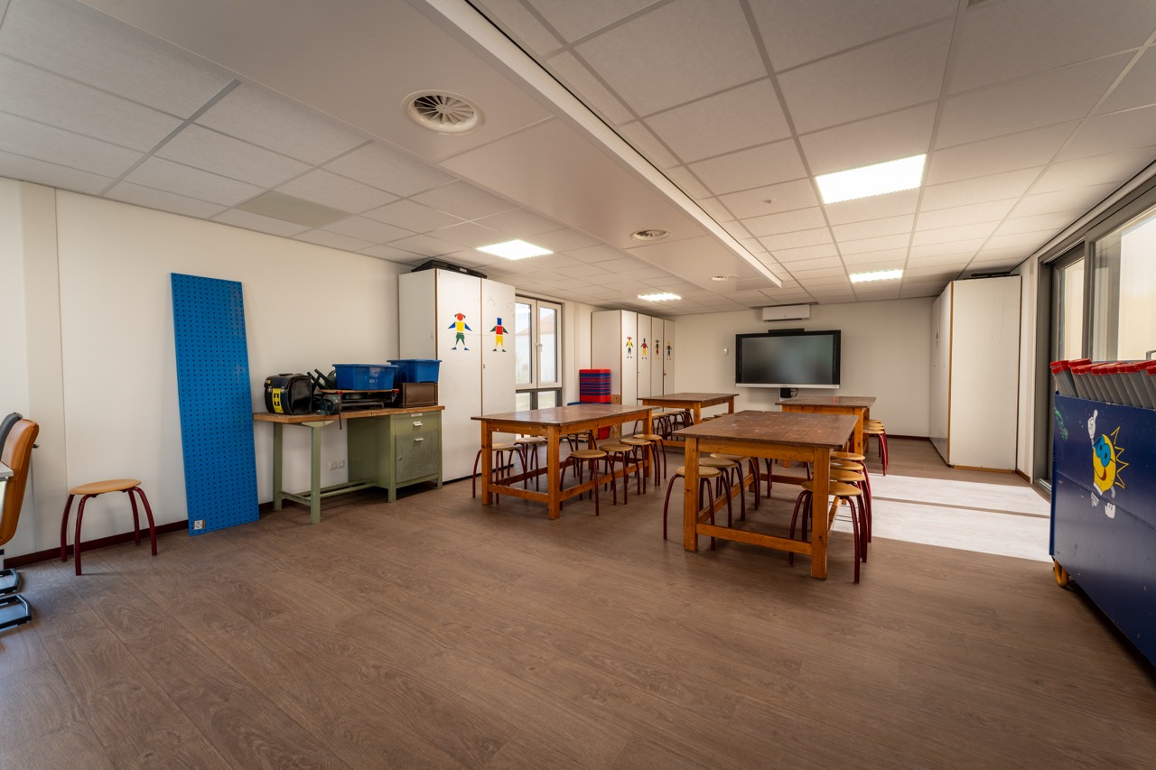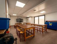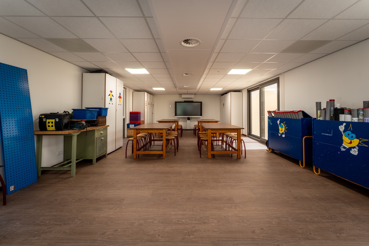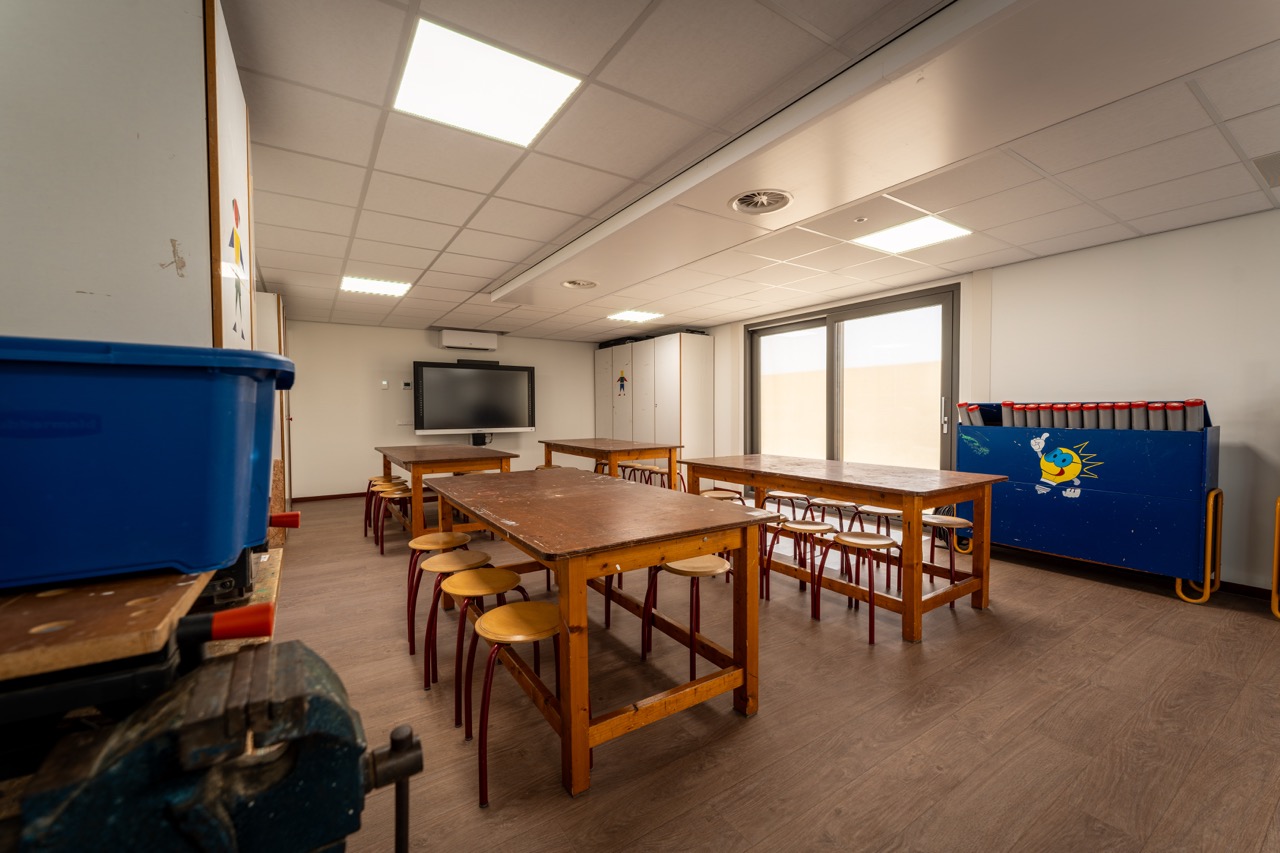 Tijdens de bouw van de nieuwe school ontstond de wens voor een extra ruimte: een Tuinlokaal van 90 m². Deze ruimte sluit qua ontwerp en kleurstelling naadloos aan bij het nieuwe schoolgebouw, zodat het één geheel vormt.